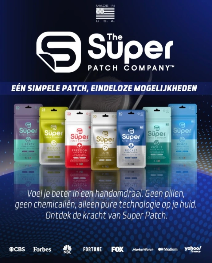 Optimaliseer lichaam en geest met de revolutionaire Super Patch technologie. Gebruik ze zelf voor meer focus, rust of energie, én bouw een inkomstenstroom op door ze te delen met anderen. Een tastbaar product met direct resultaat.